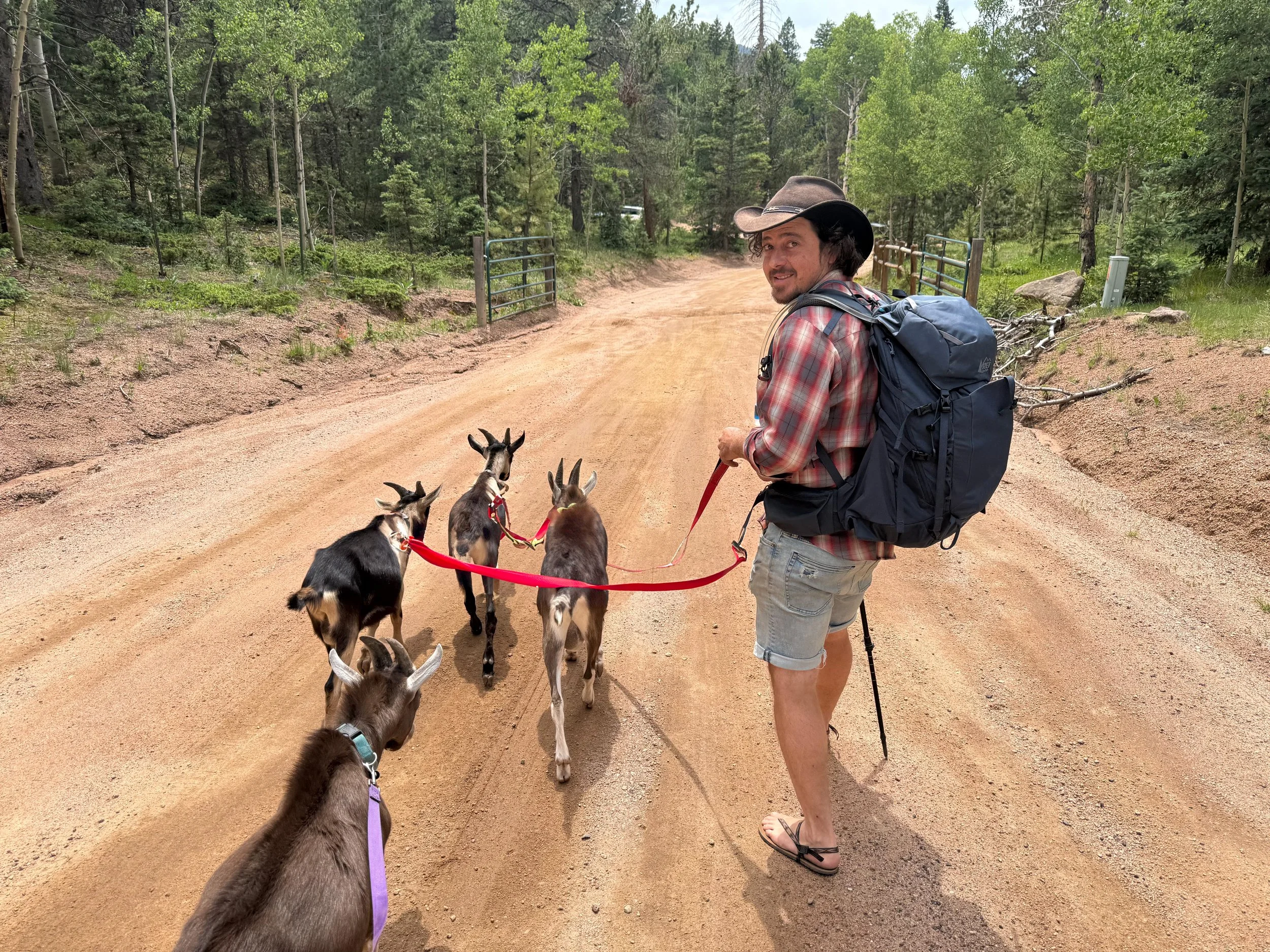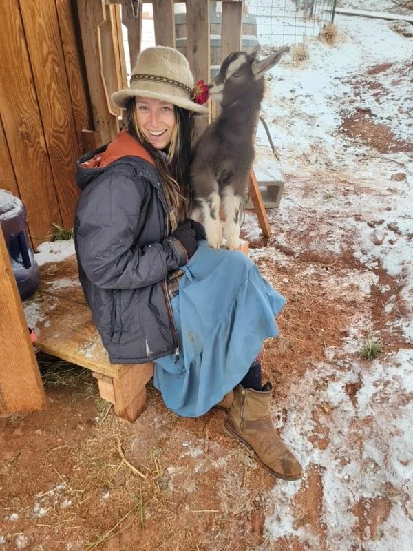 Dylan has been cultivating a relationship with goats since 2011, working with herds in Montana, Arizona, and now Colorado, where he manages Smokebrush farm. His knack for animal husbandry has developed extensively through goat walks, wound care, milking, and birthing. Alongside years of farming, permaculture, and primitive skills, his love for goats deepens simultaneously, and his attentiveness and thoughtfulness make him a true goat whisperer.